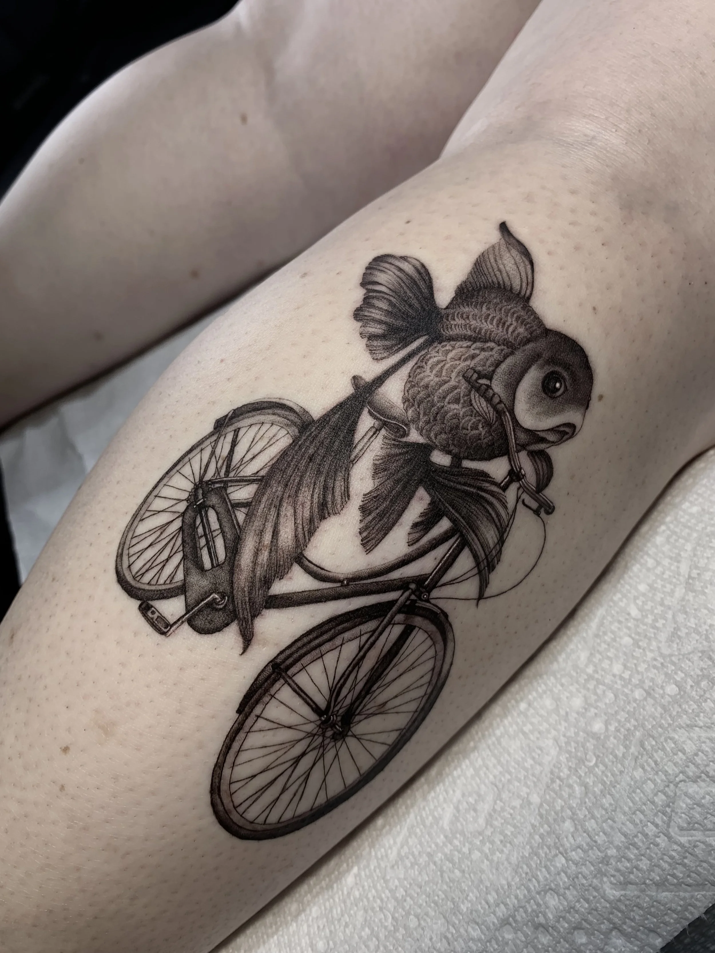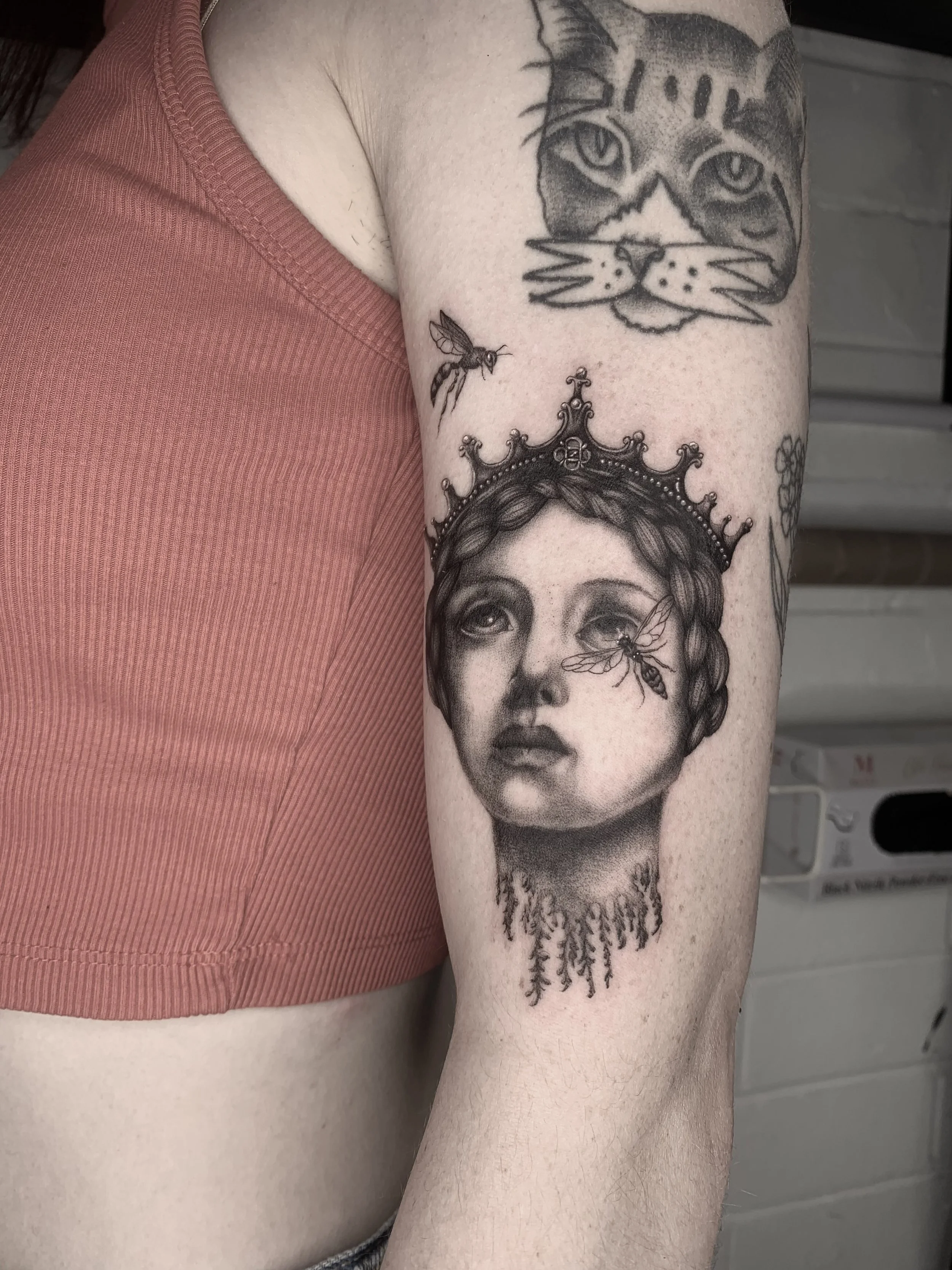Born and raised in San Diego, Corinne (she/her) never thought she’d be back when she left at 17. 8 years later she traveled home to pursue her tattooing dreams in a familiar place and did just that. She specializes in black and gray and falls somewhere in between illustrative, realism, and fine line. Mostly, she’s interested in turning her clients tattoo ideas into something “better than they imagined”, whatever they may be.